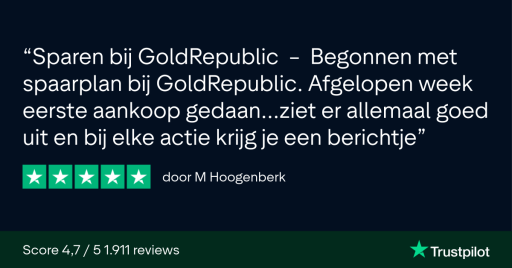 - Automatisch vermogen laten groeien: door het spaarplan van GoldRepublic spaart u volledig automatisch elke maand een bedrag in edelmetalen. Zo heeft u vrijwel geen omkijken naar uw vermogen, terwijl het gestaag doorgroeit.
